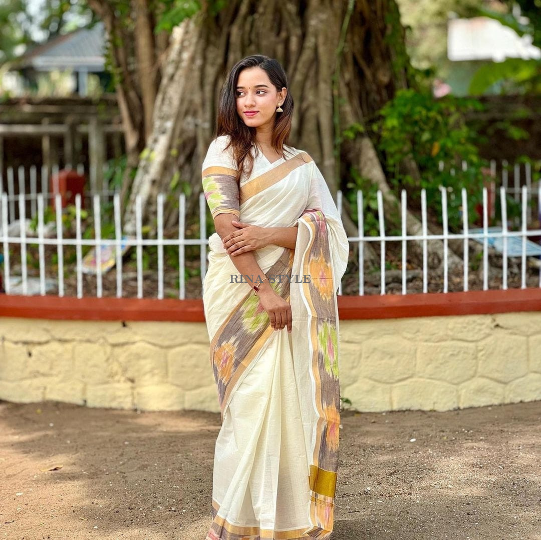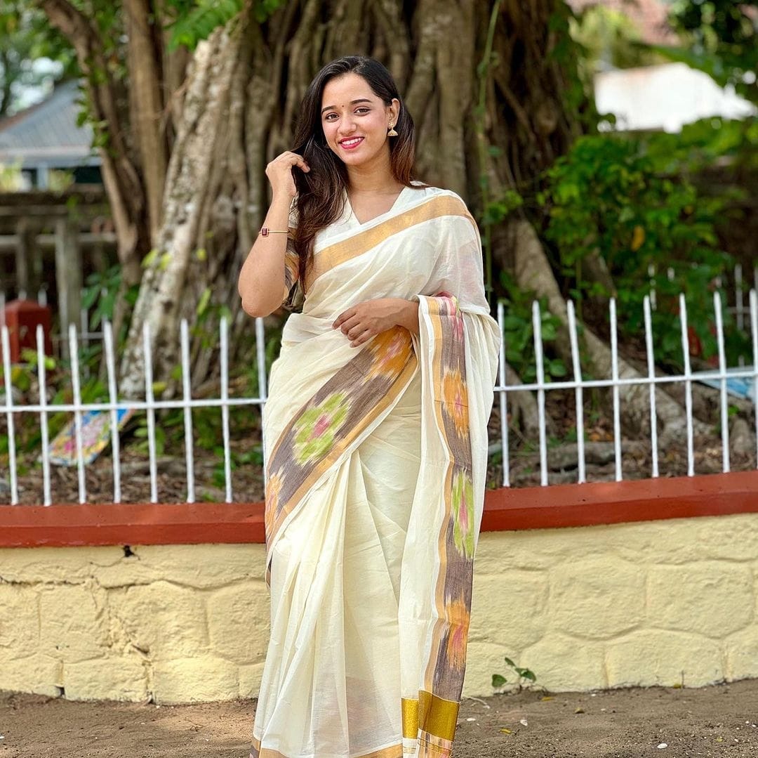 Design: Traditional Kerala saree with Pochampally border