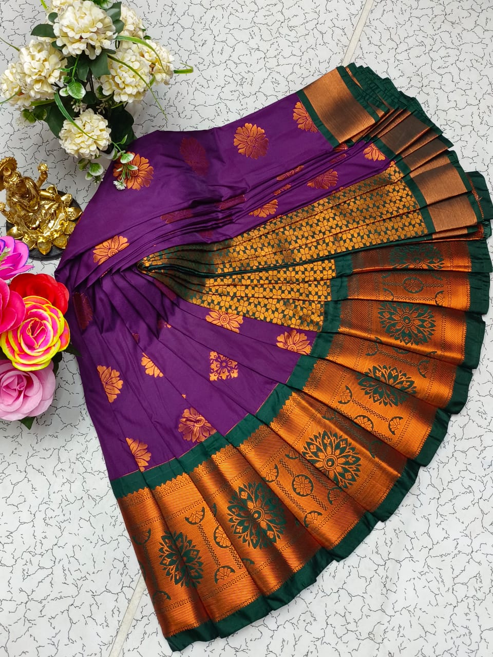 Step into timeless elegance with our Royal Radiance – an original Dharmavaram style Korvai silk saree, crafted for the bride who appreciates tradition with a touch of royal finesse.