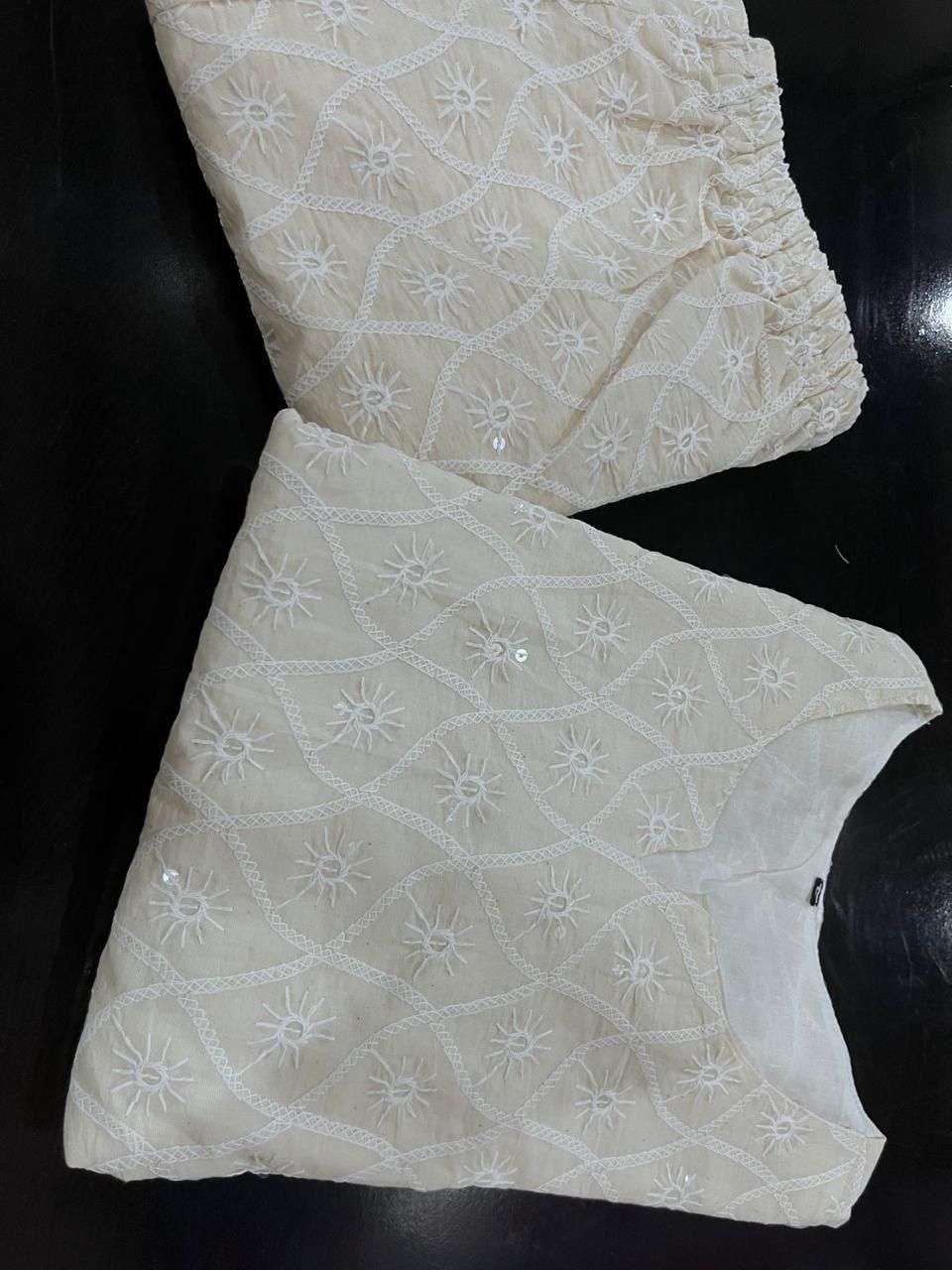 Upgrade your ethnic wardrobe with this beautifully crafted cotton chikankari kurti pant set, designed for comfort and timeless elegance. Made from premium quality cotton, the kurti features delicate chikankari embroidery for a graceful look. An attached inner adds convenience and ensures a perfect fit, while the matching pant completes the stylish ensemble.
