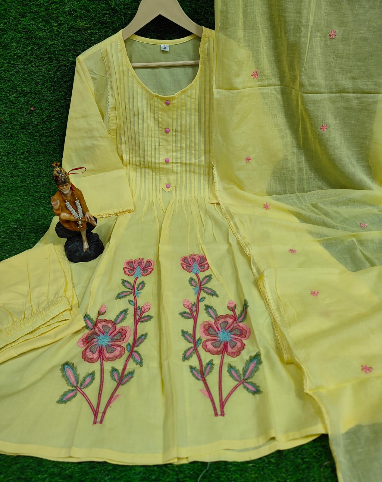Step into elegance with our latest Pure Cotton collection, designed to make you the centre of attention. This premium set features a beautifully crafted kurta with delicate printex detailing on the neckline, enhanced by intricate embroidery and lace work all over. It is paired with comfortable cotton pants adorned with matching embroidery and a full-length premium cotton dupatta for a graceful finish.